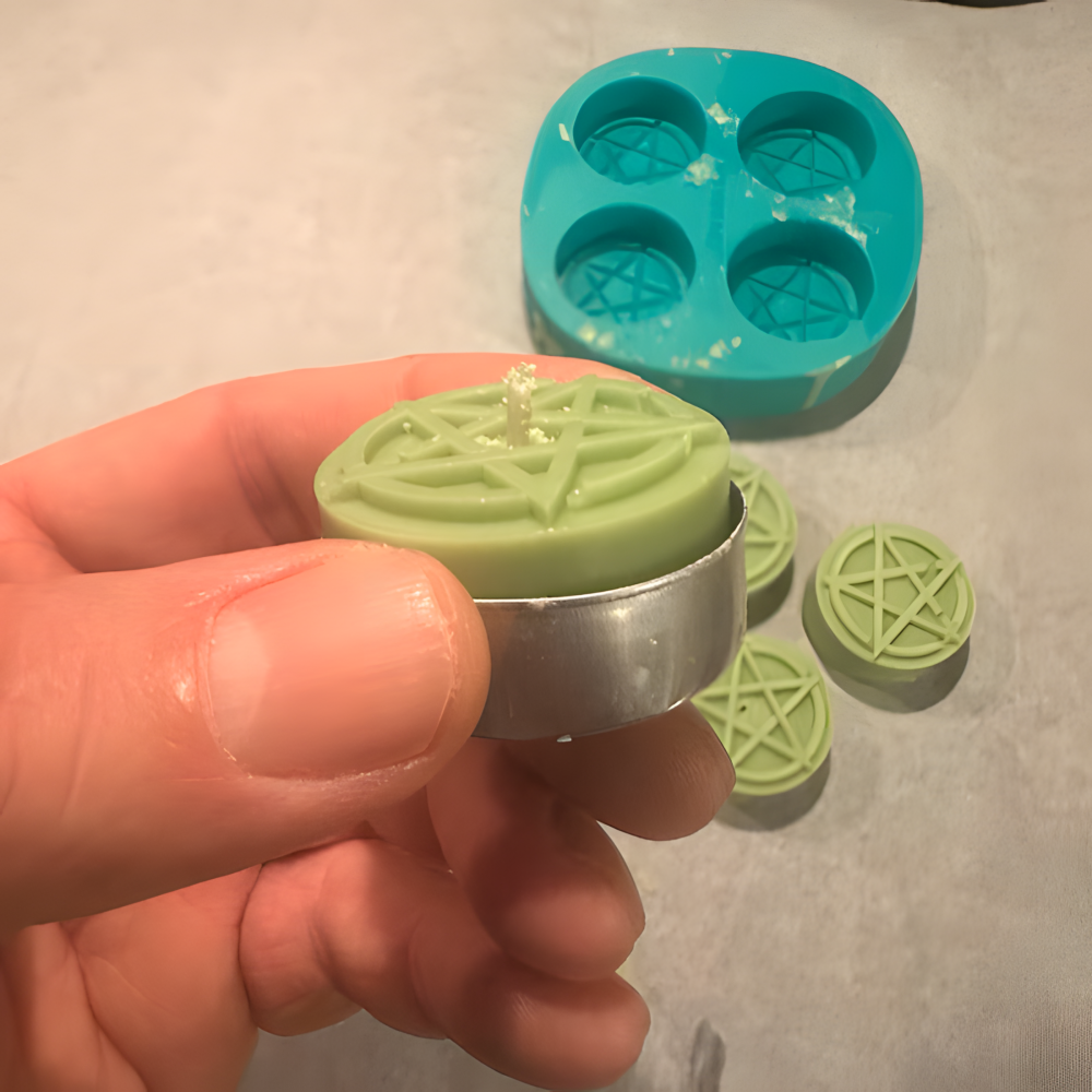 Bring a mystical touch to your handmade projects with this Pentagram mold for tealight candles. Designed as a food safe silicone mold with 4 cavities, it features four detailed pentagrams that work beautifully for spiritual, decorative, and seasonal creations. This witchcraft mold is especially useful for makers who want neat, small pieces with a strong symbolic look without taking up much workspace.