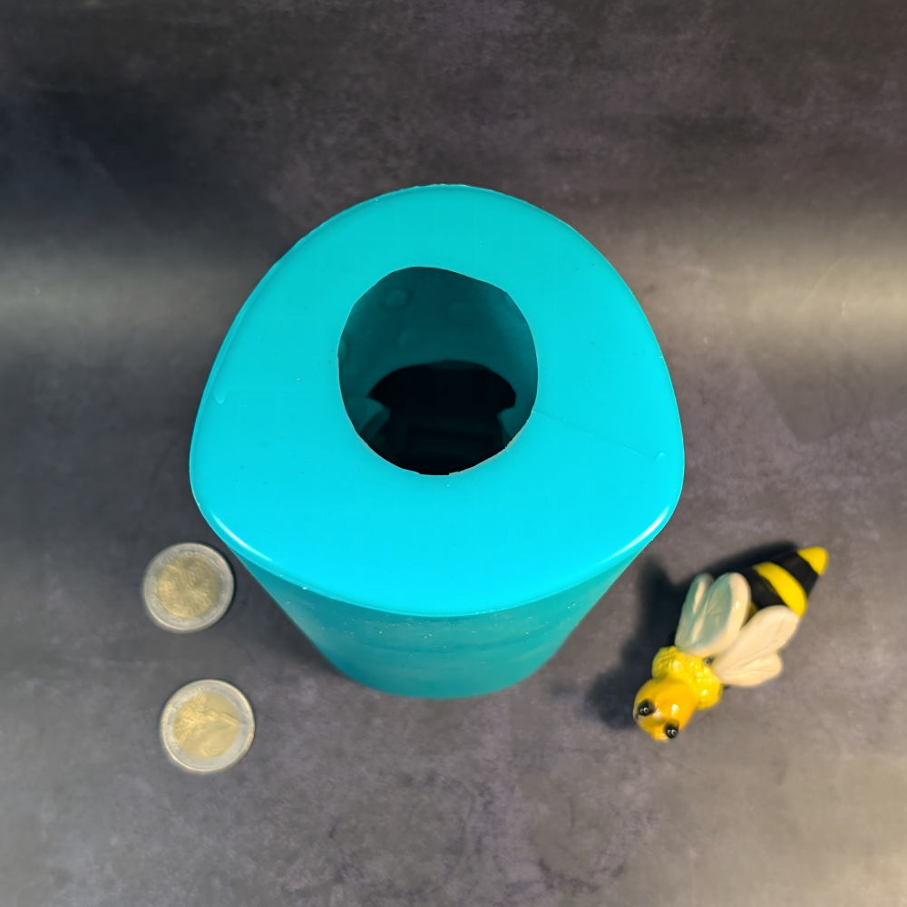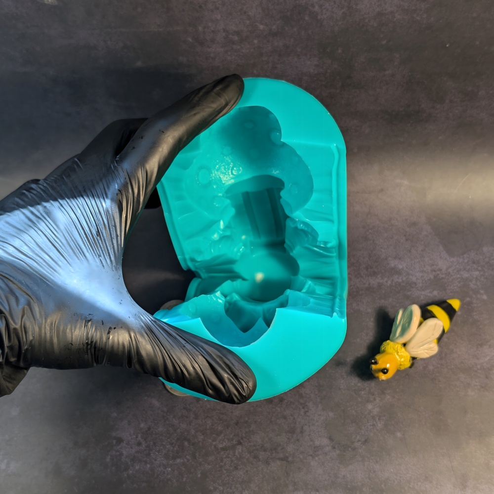 • This mold has 2 cuts for easier demolding. Rubber bands are included with every mold for securing during casting.