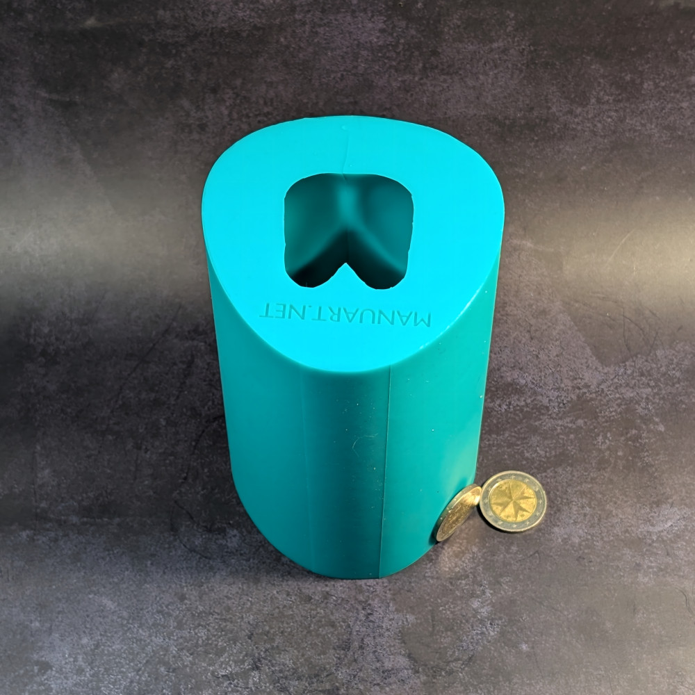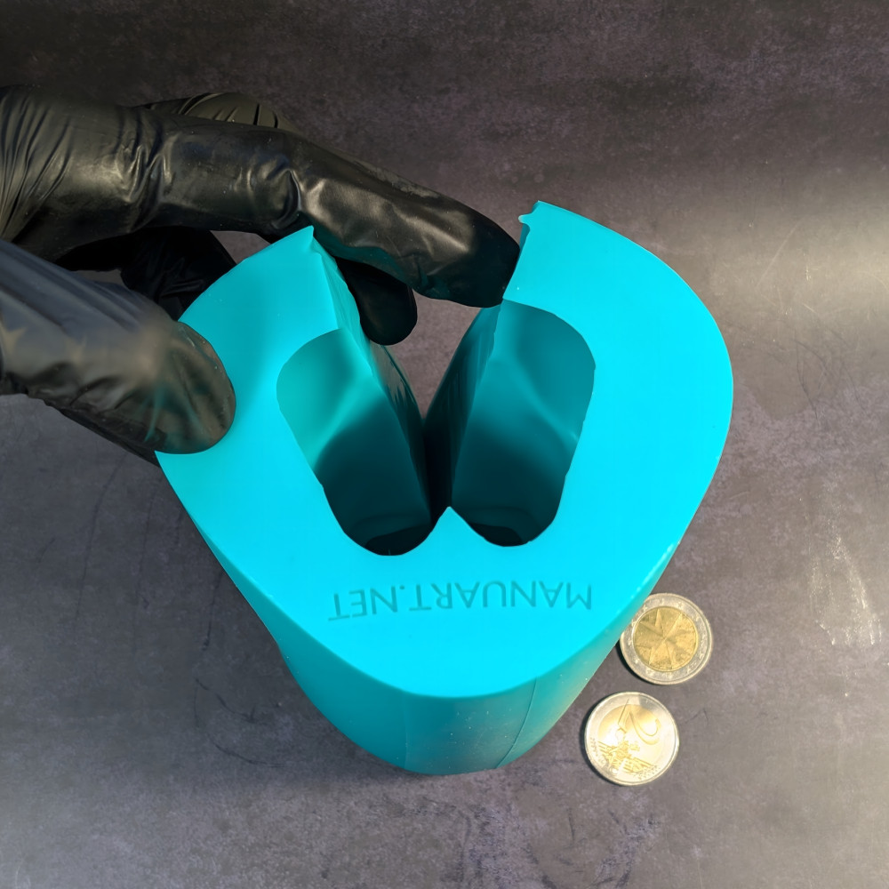 • This 3D mold has 1 cut with grooves for easy demolding. Rubber bands are included with every mold for secure casting during use.