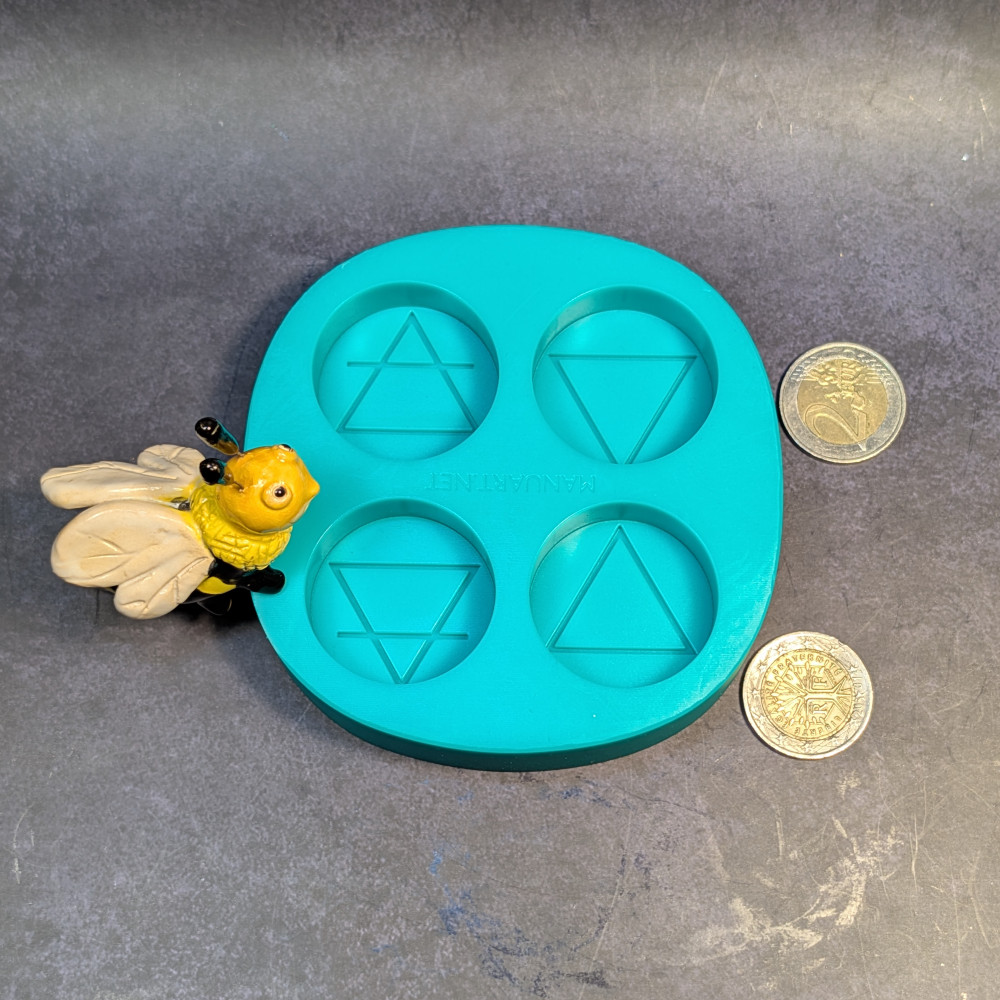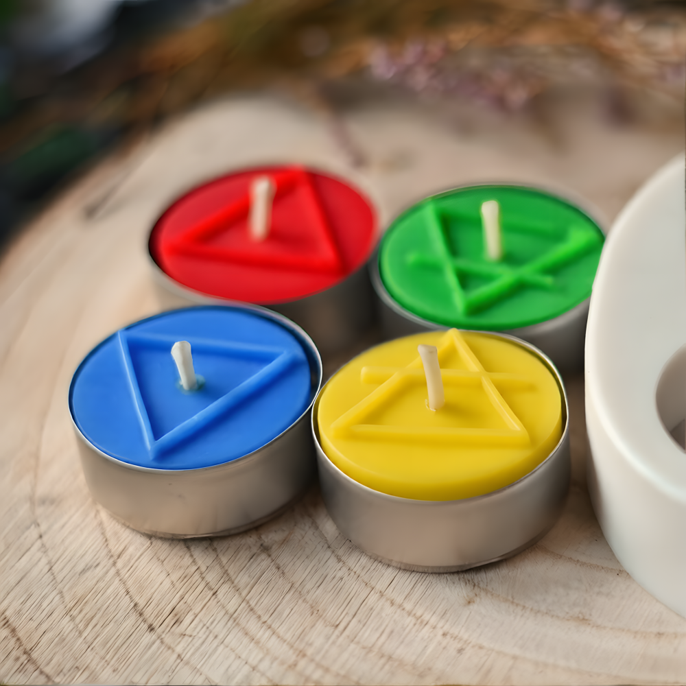 Bring a thoughtful symbolic touch to your handmade projects with this Four Elements Mold for tealight. Designed with four separate cavities, it features the classic elemental signs of Earth, Fire, Air, and Water in a clean round format that looks beautiful in both minimalist and mystical collections. This elements mold is especially useful if you want small finished pieces that feel meaningful, giftable, and easy to use in sets.