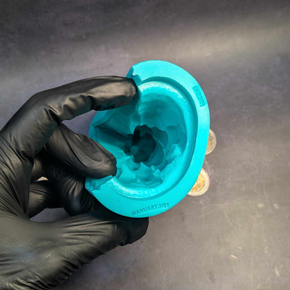 • This mold has 1 cut with grooves for easy demolding. Rubber bands are included with every mold for securing during casting.