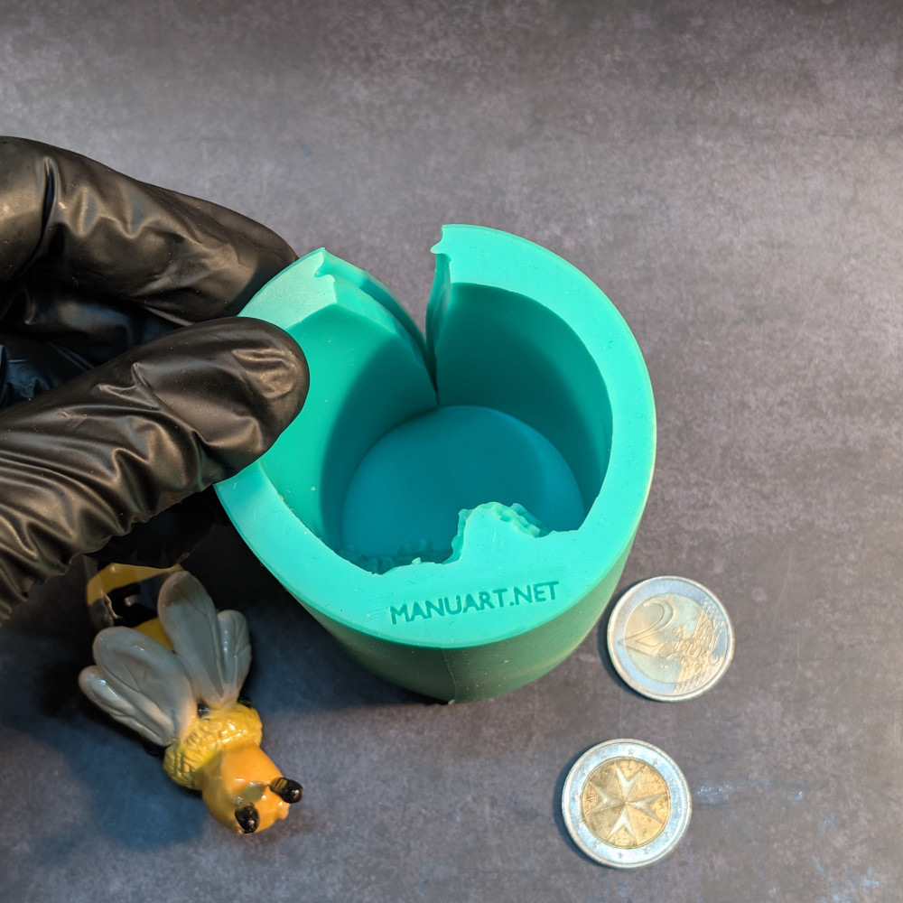 • This mold has 1 cut with grooves for easy demolding. Rubber bands are included with every mold for securing during casting.