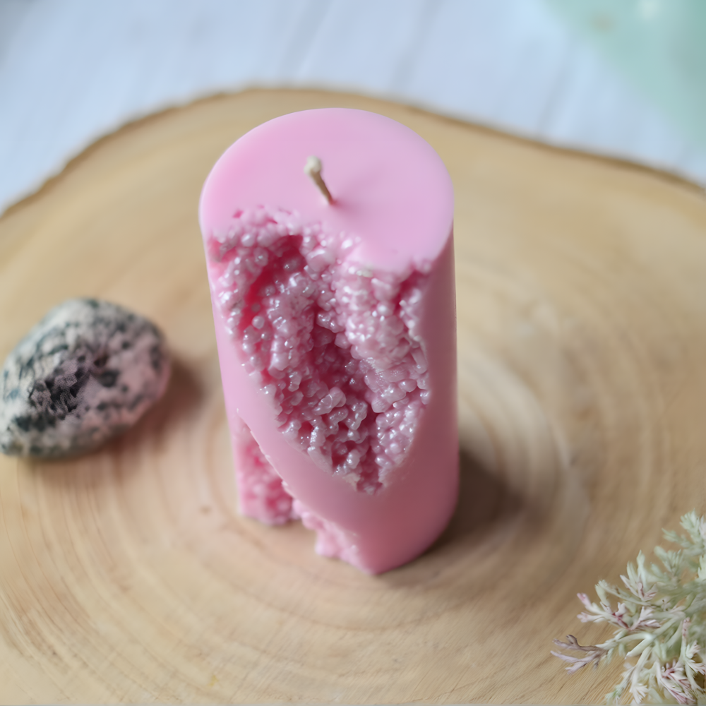 Bring a sculptural, modern feel to your handmade work with this Geode cylinder mold for candles. The shape is clean and classic, but the surface tells a different story: one side reveals a dramatic crystal texture inspired by natural stone formations, giving every piece a rich decorative look. This candle mold is a strong choice for makers who want something more refined than a plain pillar. Whether you use it as a column candle piece for wax, a cylinder mold for plaster, or a pillar candle mold for small-batch collections, it creates a finished object that feels both contemporary and artistic.