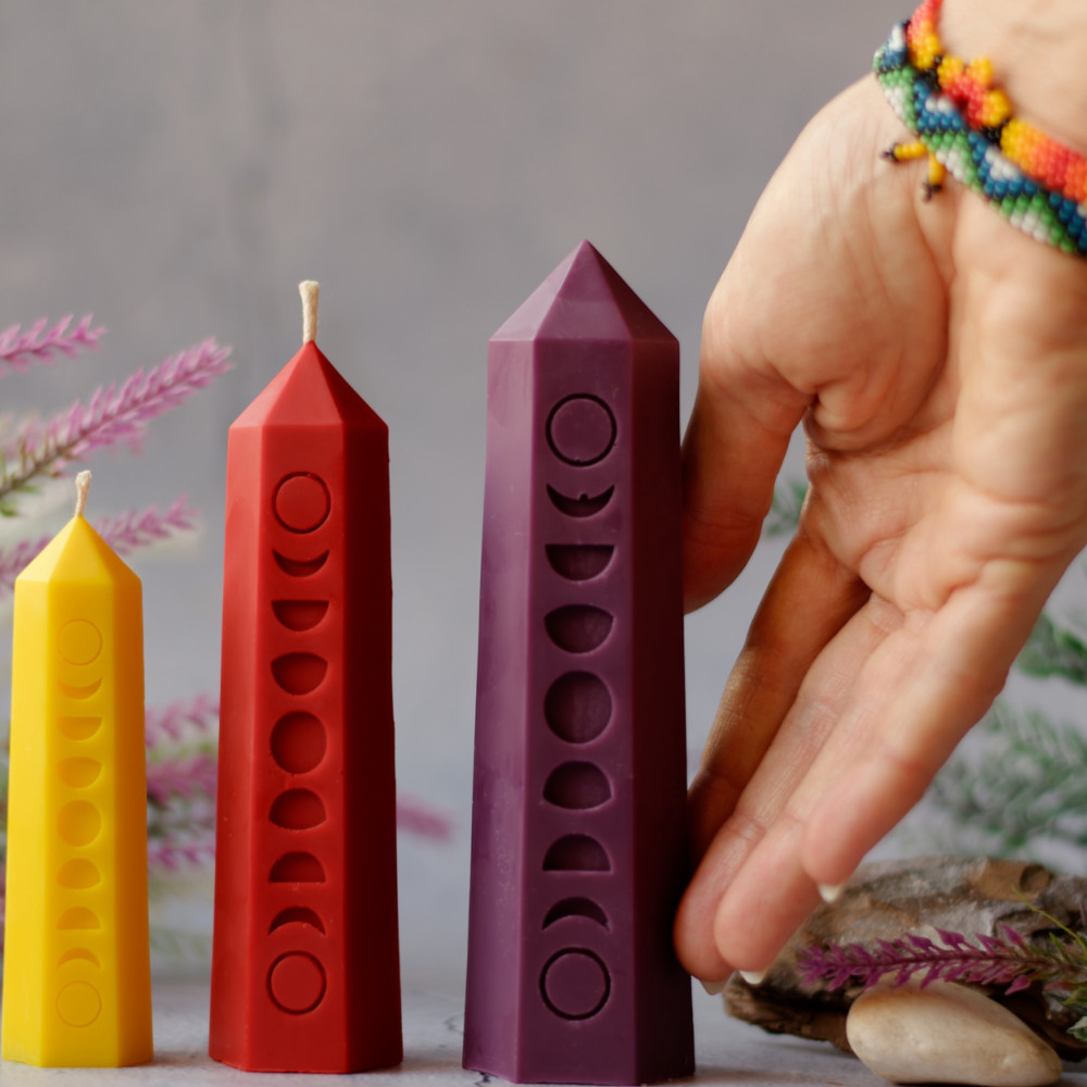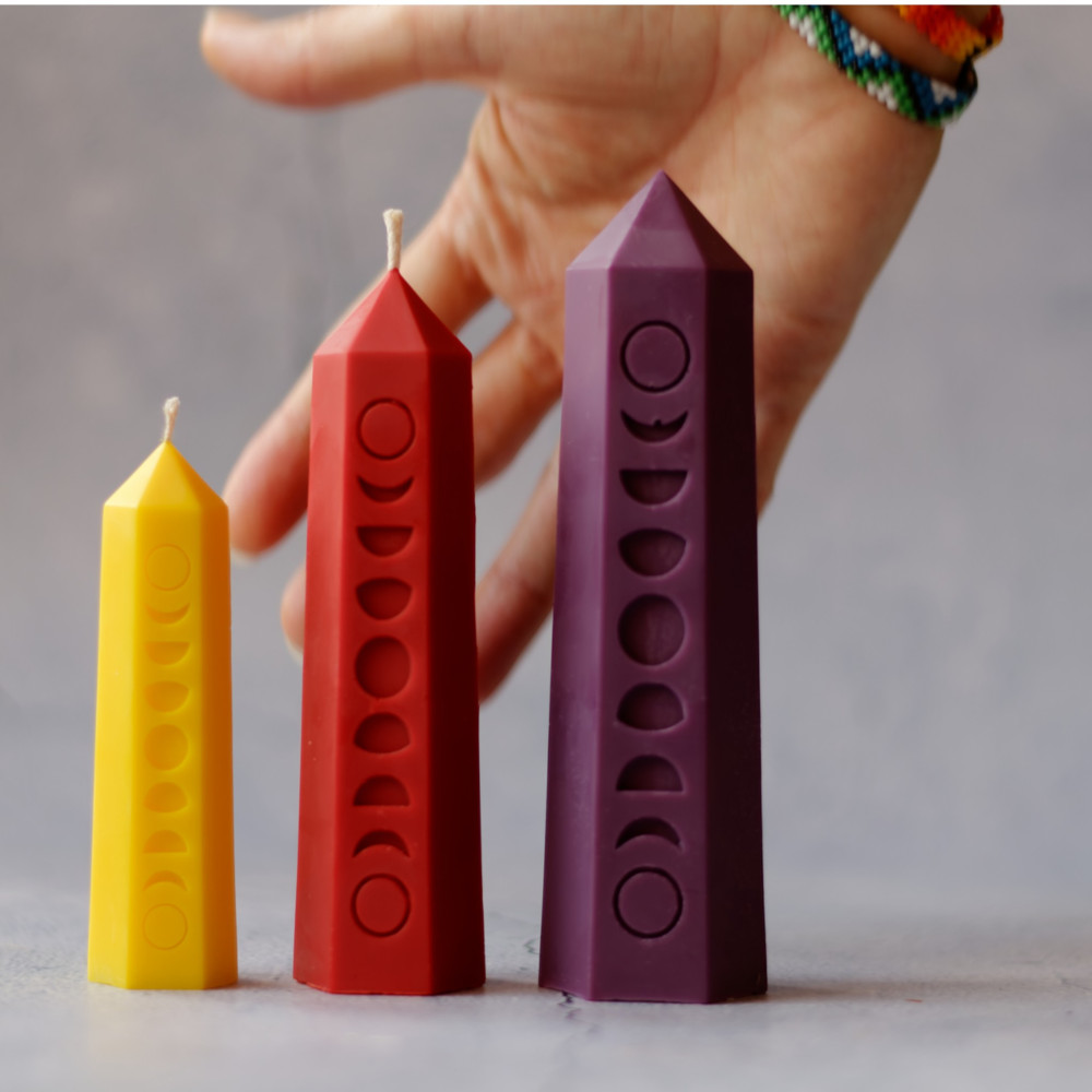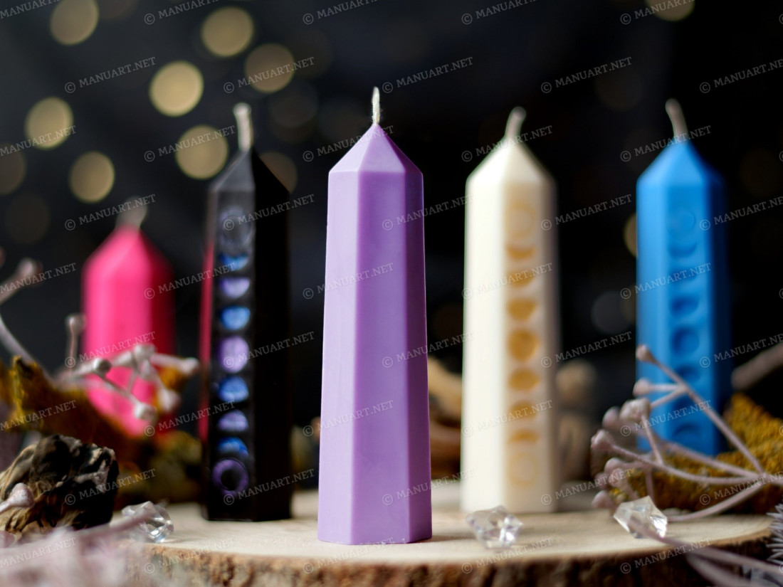 This Medium crystal moon phase mold keeps the same clean, faceted “crystal column” look, but with a taller and wider profile for a more substantial finished candle. The lunar relief reads clearly from a distance, so your castings feel intentional and symbolic even with simple, natural colors. The one-cut construction makes demolding straightforward, and the included rubber bands help maintain perfect alignment during pouring, reducing seam shift and detail loss. It works beautifully with beeswax, soy, and paraffin blends, and it’s equally useful for resin, plaster, or concrete when you want a stone-like crystal object with a celestial theme. If you create ritual sets, moon-cycle releases, or cohesive altar decor, this medium size is ideal as a “main piece” that still ships easily and photographs with strong presence. Wholesale available—message us about bulk pricing.