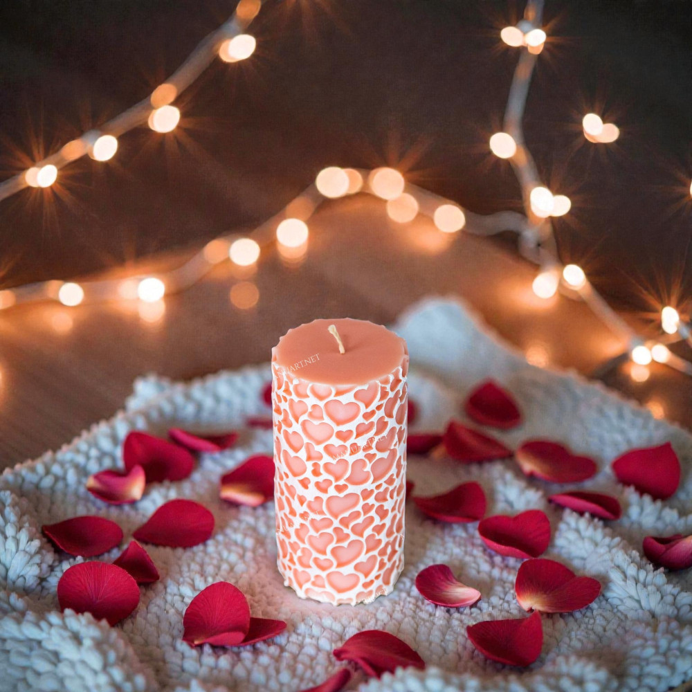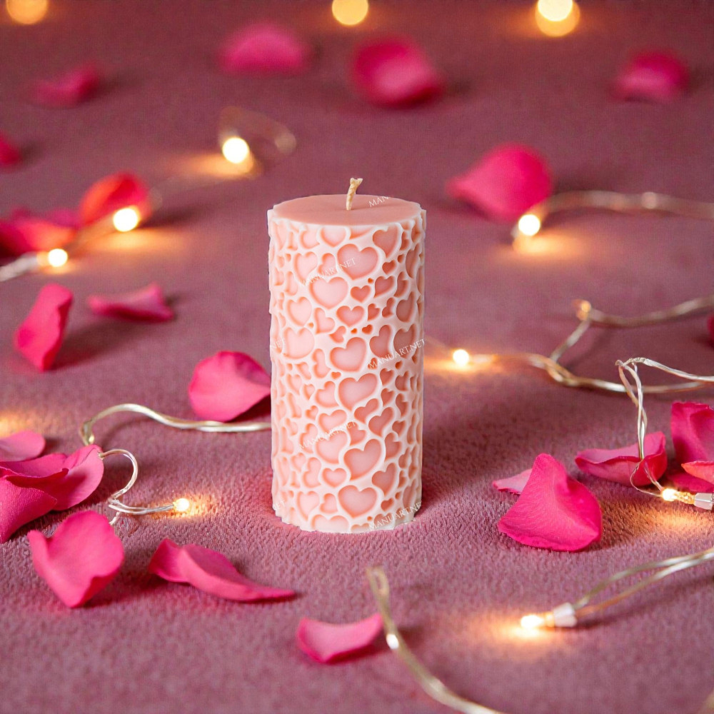 This Pillar mold with hearts is designed for creating elegant, romantic candles with a deep heart relief pattern that wraps evenly around the surface. The classic column candle mold shape combined with a soft heart design makes it a versatile choice for both decorative and symbolic projects.